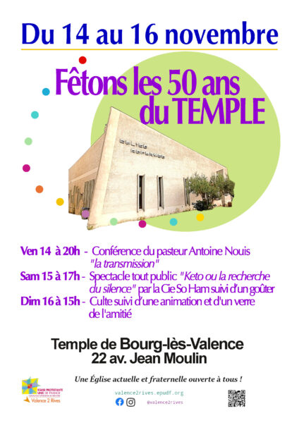 À l'occasion des 50 ans du temple de Bourg-lès-Valence, rendez-vous pour plusieurs évènements !
