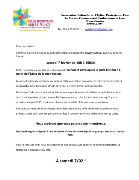 Le conseil régional a demandé au pasteur Calla (qui était venu assurer le culte du 16 novembre), responsable de la formation EPUdF et UEPAL, de venir animer cette rencontre.